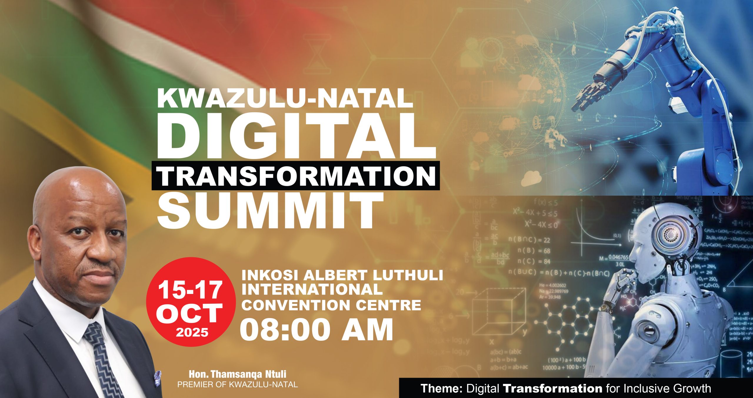 We are delighted to welcome you to the KwaZulu-Natal Digital Transformation Summit, taking place from 15–17 October 2025 at the Inkosi Albert Luthuli International Convention Centre (ICC) in Durban under the theme “Digital Transformation for Inclusive Growth.”